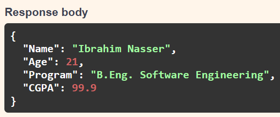 Student(id=1, name="Ibrahim Nasser", age=21, program="B.Eng. Software Engineering"),